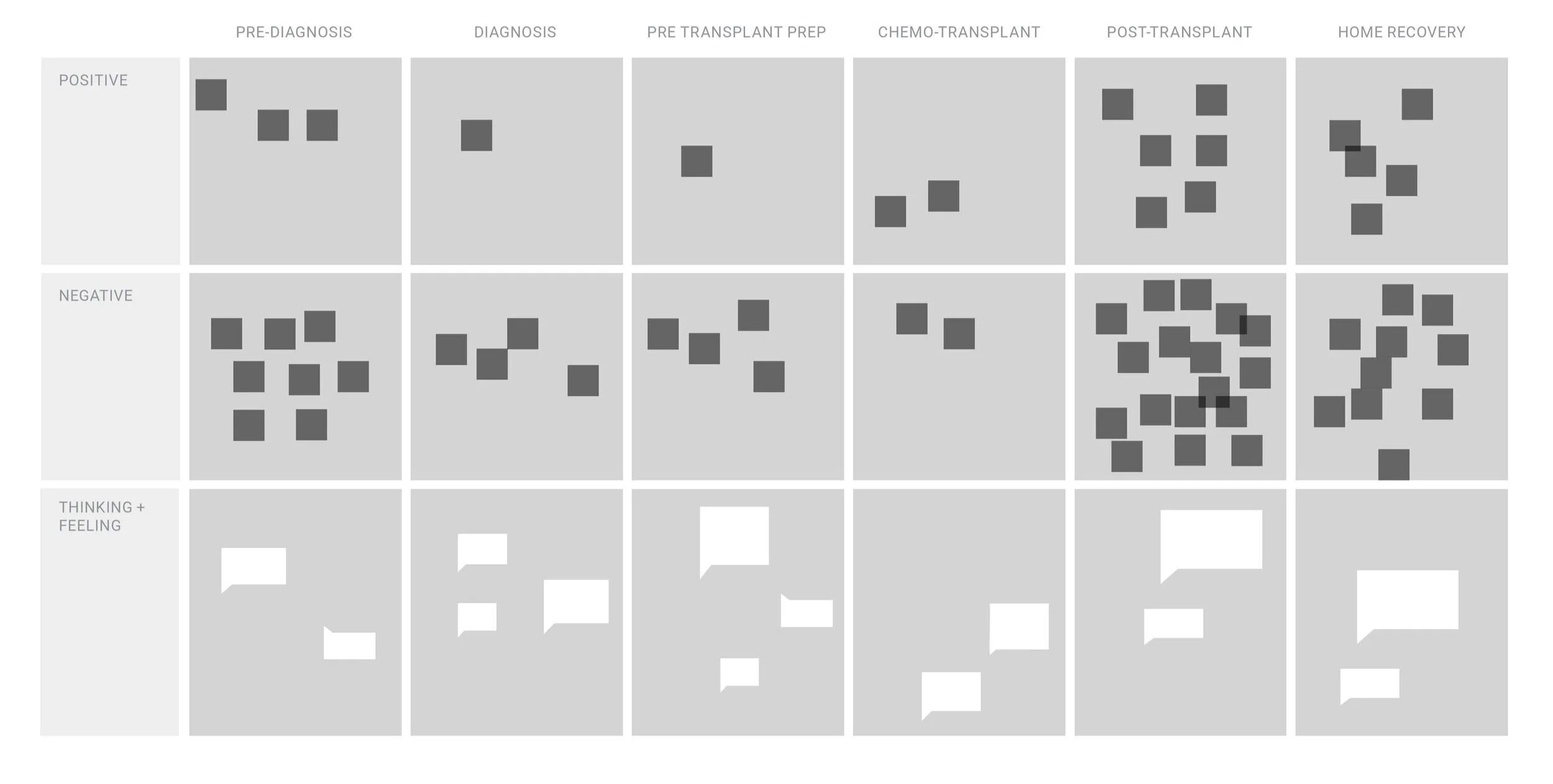 We used a card sort activity that allowed users to place different types of content, including educational materials, support materials, and pragmatic information across the different phases of the bone marrow transplant journey.