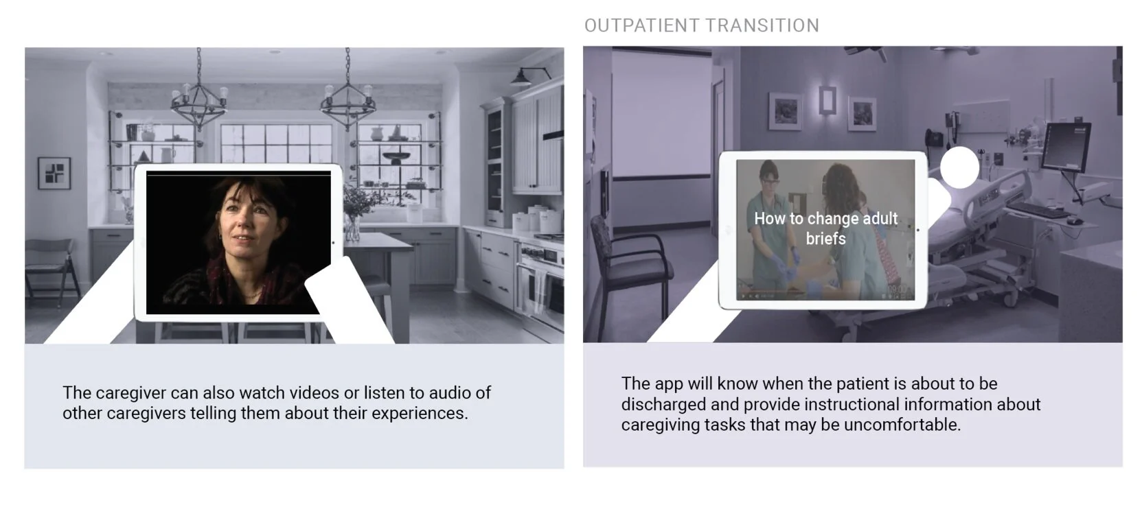 Because caregivers have different experiences with symptom severity, technology in general, and the healthcare system, touchpoints with social workers or RNs in concert with the application should also be designed to ensure engagement and to understand when situations might require a person instead of a digital intervention (i.e. very severe symptoms).