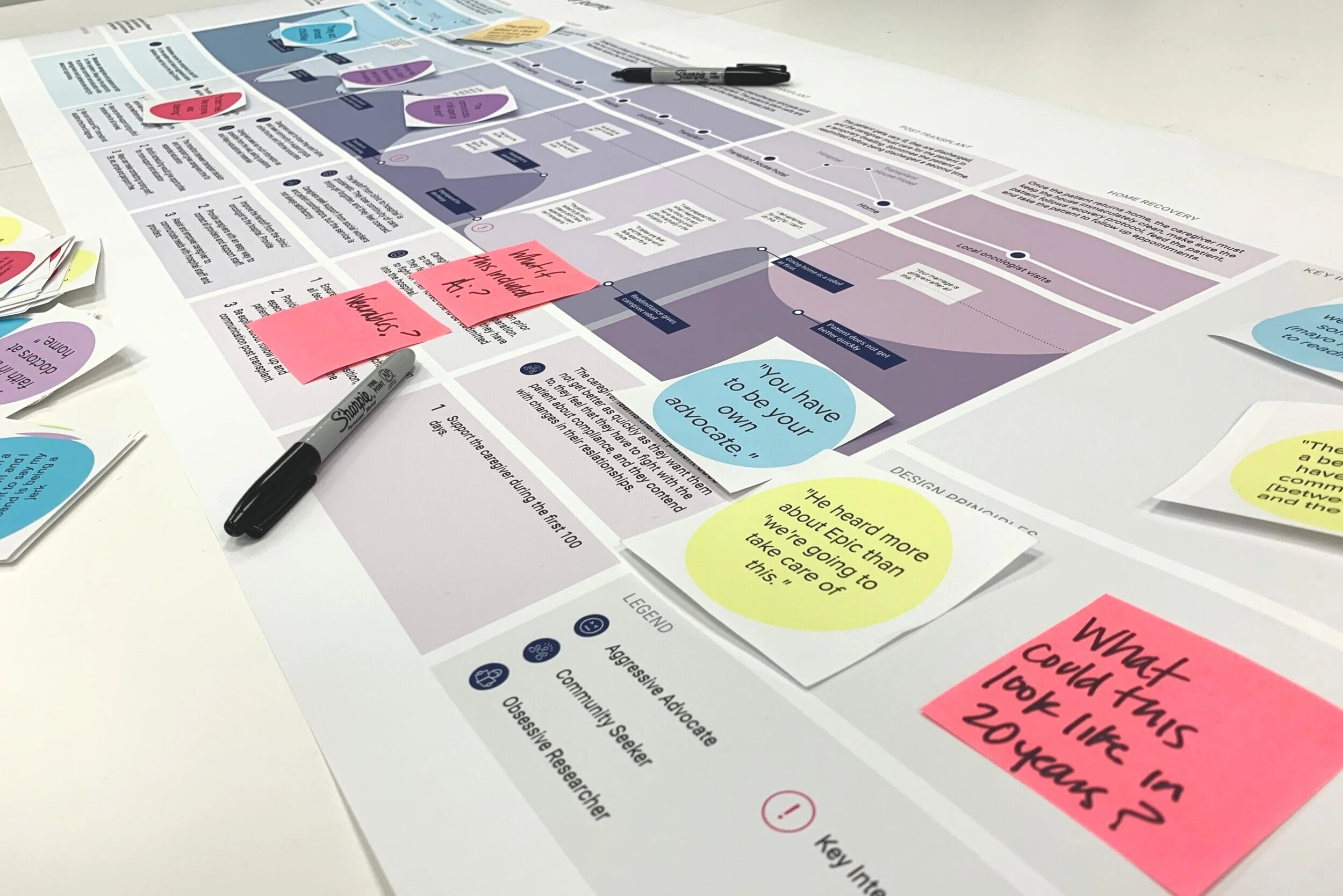 After several hours of controlled chaos, we created a journey map to help the interdisciplinary team easily understand the caregiver experience and the associated low points and opportunities for improvement.