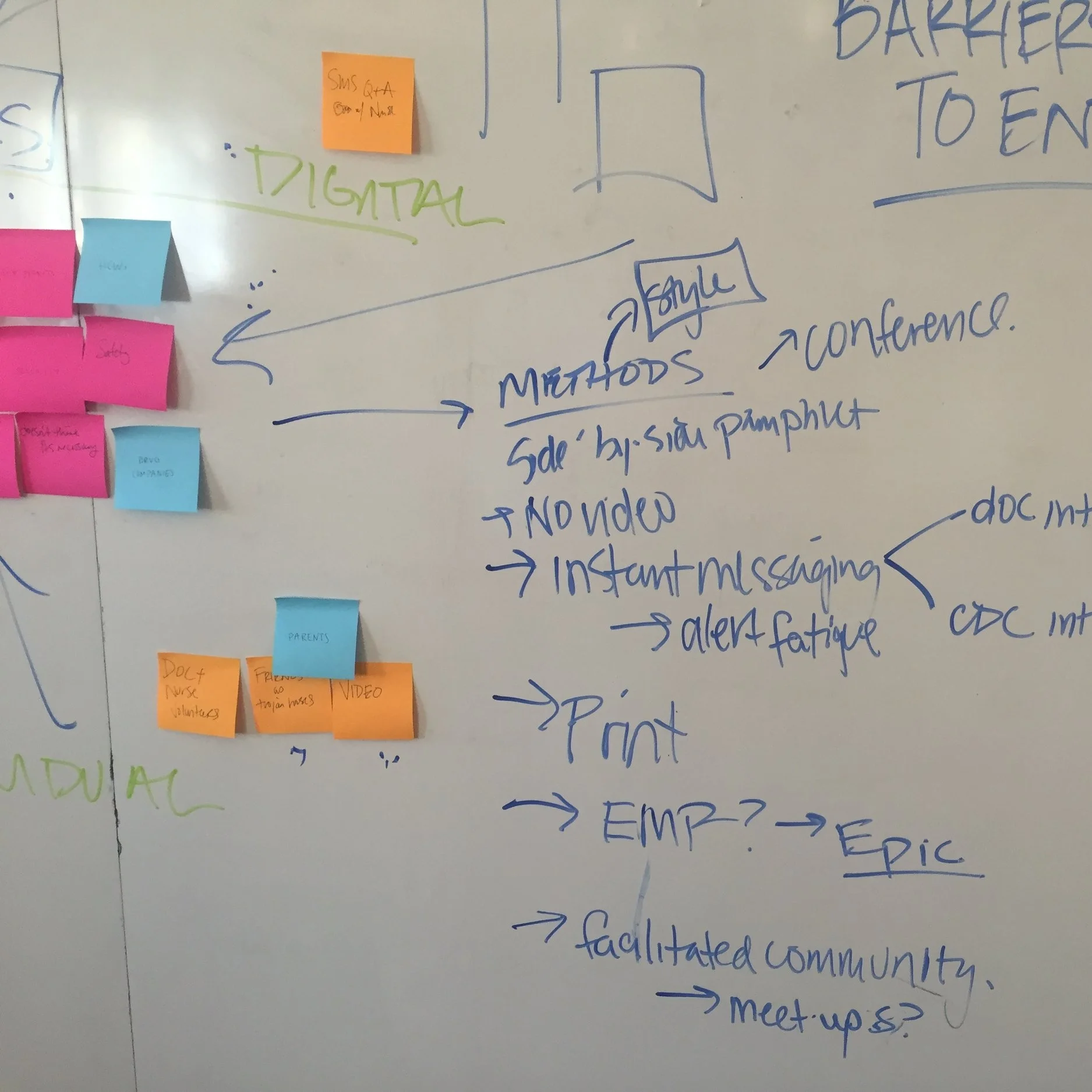After a deep literature dive, our primary inspiration for the ecosystem was the historical context for vaccination decisions. Anti-vaccination groups have been around since the advent of the Small Pox Vaccine in the 1800s. We realized that this problem is not a new one, but rather a cyclical seemingly unavoidable product of fear of new and change. With this perspective informing our direction, talking to people ultimately allowed us to humanize the decision process and understand what parents really want and need was one of the most valuable parts of the research. We leaned heavily on design ethnography and questionnaires as a way to gather key insights and themes about vaccination attitudes, and also as a way to research our design iterations.
